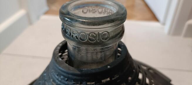 Używany gąsior Ambrosio o pojemności 10l. Wykonany z grubego szkła który opatulony jest z plecionego materiału(plastik ...